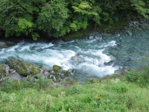 またもやの大雨でした。地元の方々は「まあ こんなもんだよ」と気にしてませんので我々も見習おうと思いますがネットニュースを見ると 世間は大変ですね。お気を付け下さい。あれだけの大雨が降っても被害が無いのは,やはり新堰堤のお蔭なのでしょう。「今日も水が流れる」にしても量が多すぎます。が,21日18時の時点では午前中は水没していたアザラシ岩が頭を出し,ドラゴンロックはドラゴンから通常岩に変身しつつあります。(左下の斜めの岩は水量が増えると龍に見えるのです)平水までもうじきです。