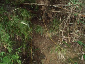 今日は1番から9番までの入渓口と脱渓口の整備をしました。4番笑い淵の最終アポローチが若干危険だったのでサポートロープを設置しました。最初左側のロープを取り付けたのですが手掛かりになる木の枝の状態に不安が残ったので右側にも追加しました。脱渓時には特に効果を発揮するでしょう。6番フラットポイントの入渓口が滑り易い状態でしたのでサポートロープを設置しました。入渓された方は感想をお知らせ下さい。