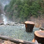 昨日からの雨もようやく小降りとなってきました。2月27日にボタ雪が降って以来,雨が降る毎に暖かさが増して行くような感じです。本日は雨が小休止している間を縫って見回り・水温測定しました。水温7℃以下の所は無く,最高で8℃ (西山広場の流れ込み) でした。桑瀬川本流は8℃です。水位は50cm程上昇してまして,その影響でしょう各プールの「ヒラキ」が広がっています。そして「アメゴ達」が「ヒラキ」で動き回っているのが見えました。いよいよ,岩の下から出てきたようです。増水時にはそれなりの釣り方があるようです。「〇〇ポイントと〇〇ポイントは増水時に」と言われてますが,その通りでしょう。増水時には餌が巻き込み流下するようで,魚の動きも範囲が広いです。ロッドを持っていないと見え易くなるステージがあるようです。集落では銃を持たない人の方が猪を良く見つけると言われてますので,同様の現象かもしれません。