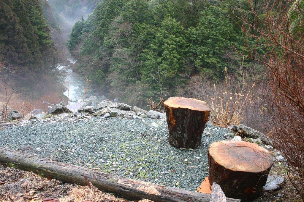 丸太椅子とテーブル、木の香りがプンプンしそうです。