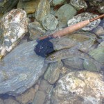 水温が昨日よりも場所によっては1℃上がりました。日中気温も12℃を越えウェアチューニングに迷う程です。昨日は昼過ぎまで邪魔な風が吹いていましたが,コーヒーブレイク後に夕刻・再度入渓された来訪者・島根のNさんはウェーダー無し・二か所・一時間少しで6匹キャッチ しました。午前中は#12~#18のアダムスを使用したと言ってましたので,多分同じものでしょう。
