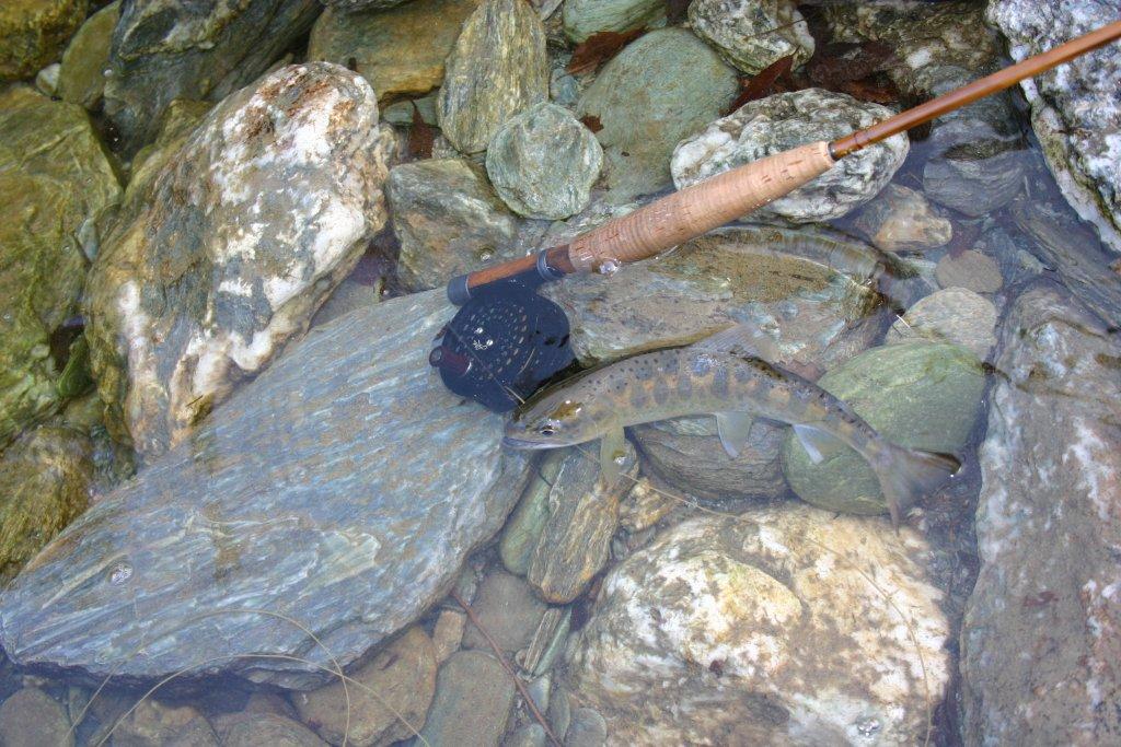帰宅後,見回り・水温測定へ。6.3℃~6.9℃で,「これは」と思い,フライを投じてみました。ワンキャスト・ワンアタックでした。ライズは無かったのですが虫のハッチが増えました。一番の良型は22cmでした。アダムス・パラ#18・#20,6Xティペット (!!)。茶とか黒は効かんかったです。本日もニーブーツ・フィッシングで「チマチマ」と。