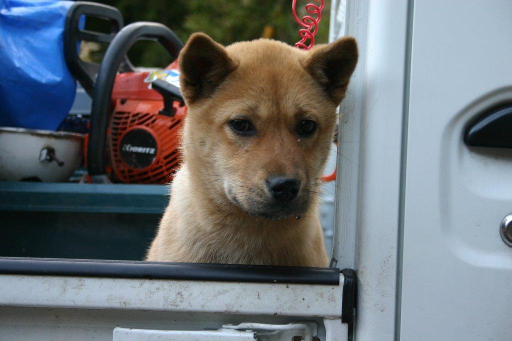 私は犬です。生まれて5か月,まだ名前はありません。ハンター犬の父さん・母さんの娘です。今年の秋の「猪猟」でハンター犬としてデビューする予定なので訓練が始まりました。初めは車に馴れることから・・・・それが苦手なんです,私。でも頑張りまっす。このままだと「名無しのゴン子」って呼ばれそうなのでGoodな名前を募集します。