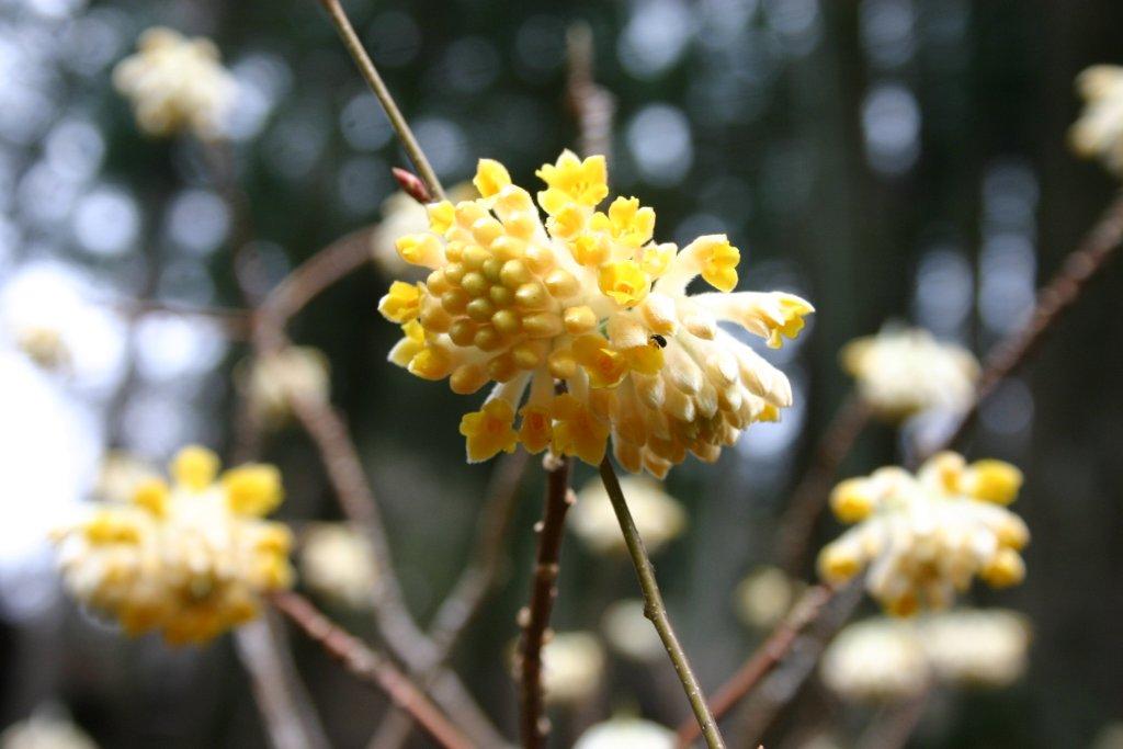 ミツマタの花、こちらはもう終わりそうです。鮮やかな黄色の花でした。
