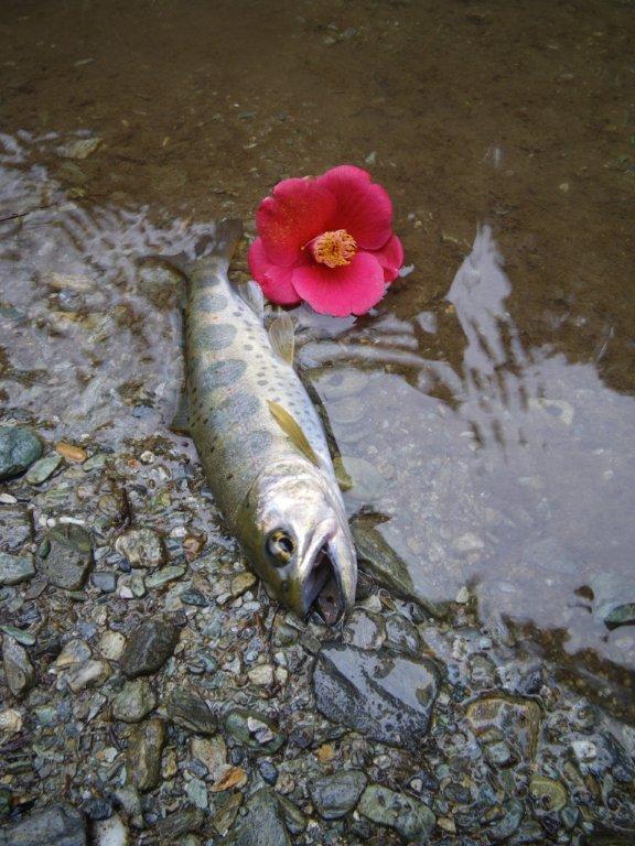 放流アマゴ君達はポイントによっては盛んにライズしてます (フライの食べ方は上手とは言えないので「遅合わせがBestかも」です) 。