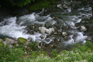昨日の大雨の影響は?・・とテラス下を確認したら,PM0730ラッコ岩・首下で「夜の間の雨?」,昨日のPM5とほぼ同じ水位でした。通常でしたら追加雨が降らなければ半日で釣り可能水位まで下がるんで・・。濁り度合は1/5(0~5までの6段階評価) でして底岩ははっきり見えますので水位が下がるのも時間の問題,と言う事で見回り・水温測定・魚ウォッチングへ。出合橋では中野川川の水温測定ポイントまで行き着けず(ニーブーツでは冠水の恐れあり・で) 「水位,高いな~」でした。魚の姿は一箇所を除くと「見えず」でした。その一箇所では「何事も無いように,良型がクルージングとライズ」をで,「なんでや??」。本日は脱・入渓口の新規開拓がメインなので「調査」は無しで,暫くの時間12インチオーバー・アメゴの行動に見とれていたのです。初期の作業予定進捗は意外にスムーズで,先日苦労して脱渓したポイントから20m上流に楽勝ルートを見つけました(知ってる方はいるんだろーなー?,あの藪漕ぎはいったい何だったんだろう)。昼過ぎには水位もラッコ岩・足の付け根上まで下がり,晴れとなり「釣り可能状況」でした。保険関係の打ち合わせで来訪した方が「中野川川は澄んでますね~,他の川は濁ってると言うのに」と吃驚してました。「この川はそうなんです,水位と濁りの回復が早いんです」と,小生。
