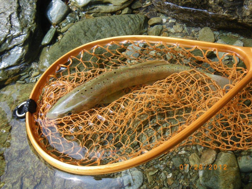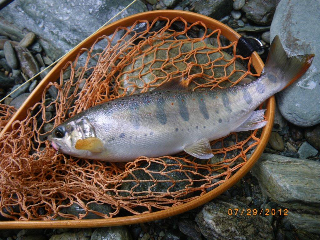 週末釣果は「渋め」でした。フックアップは中・小型が殆んどで,大型はリーダーブレイクが一尾 (傷んでいたのでしょう) ,あとは「毛鉤を見に来て帰る」パターン。下流域で「調査」をしてみましたら,「小さな・小さな」ポケットプールや枝葉下の細・浅・短(サイセンタン) 流れからアタックがあり,LTで岩際にしばらく漂わせた毛鉤に吸い込みフッキング等,小生が苦手とする繊細釣りになりました。こんな時は「夕立の釣り」さ・と,雷が鳴ったのでイブニングのライズ待ちみたいに「それなりポイント」近くで待機してたら「すっぽかし」の晴天継続でした,残念。入渓者さん達の週末レコードは25cmアマゴで,大きいのがアチコチに浮いて見えるのが「からかわれている」ようで「小癪な!」と晴天週末は終了。ただ,「鯉のように大きな魚体」を数尾目撃しましたので,「魚さんの気分が乗った時」を見計らってチャレンジ。大きな魚はアジト(隠れ家)をしっかり確保してますので何とか攻略方法を考えて・・・みましょう (「海流の中の島々」では アジトを「罪の家」って言ってましたっけ・ゾクッとする良い表現ですね?)。