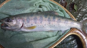 日中は「暑い」ですが,夜間は過ごし易い中野川です。皆さん,「猛暑の夏」いかがお過ごしですか?。上流部の日陰に身を置くと「生き返り」ます。減水し始めてますが「梅雨」で雨が多かったので・「何とか対処できそう」な感じです。で,「釣れる方には釣れるんです」,の報告で,「釣れない」小生としては・・「複雑」です。宿泊釣行された方が,初日は別水系の「某沢」で29cmアマゴ♂を,そして本日は中野川川で29.5cmアマゴ♀を筆頭に27cmを数尾,#16ドライフライでキャッチしました。連日,入渓者が有る人気ポイントなんで,結果の違いが・・・。「スレとる」とは,本日の入渓者さんの談ですが・・小生レベルにしたら「納得いかない」感があり,「スレ」て無かったら「どうなるんだろ~ね~」で・かなり「羨ましい」ので,パチパチ。