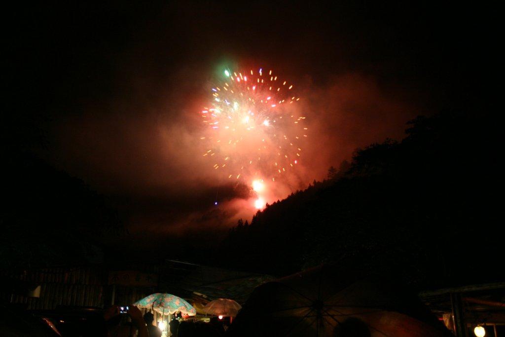 久々に朝からスッキリ晴れました。昨夜は第27回 吉野川源流本川まつりの「源流打上花火大会」見物に。ここんところ,お祭り続きです。山の木々の間から打ち上げられる花火を見るのは初めてですが・「ナカナカ乙」なものでした。大きな尺玉やデザイナーズ(?)花火もあり,短時間 (30分) とは言え 盛り上がりました,パチパチ。本日の魚君達は沈み気味でして,雨続き対策で石を呑んでいるのかもしれません。天気予報では暫く好天ですので浮いてくるでしょう(いつもの浮き場所ではチャンと浮いていますが・・) 。最近の傾向として「カップルさん」が目立ちます。それも御二方で釣りをする「微笑ましい姿」です。年齢構成は様々で,「FFの楽しみ方」の多様化を感じます。