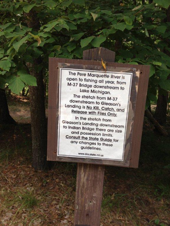 画像のレギュレーションボードを読んでみたら,「The Pere Marquette River is open to fishing all year ・・・」との記載がありまして,「産卵期の扱いは?」と質問したら・・