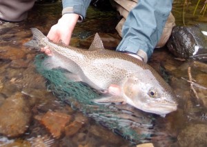 週末宿泊入渓された方から,今夏 北海道・十勝でキャッチされた62cm!!虹鱒の画像が届きました。小生とほぼ同時期に十勝入りしてガイドフィッシングを御夫婦で堪能しての大結果でした。中・小型を沢山釣って喜んでいた小生は・・「修行が足らん!」とチョイ反省。北海道はもはや「日本語が通じるニュージーランド」と言ったら,「大物がもっと・モット釣れれば・ね」とは62cmキャッチャーさんの弁。何はともあれの,パチパチ。