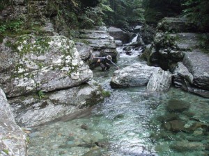 水温測定結果 (AM8・晴れ) :出合橋・(桑瀬川・中野川川 測定未実施) , 1番二ノ瀬 測定未実施,14番 旧堰堤上 17.2℃ (気温22.5℃),20番 西山広場 支流 17.1・本流 17.0℃ (気温19.8℃),26番 左の谷 (荒瀬 アラセ) 15.5℃ ,27番 右の谷 (葛下げの谷 カズラサゲノタニ) 16.7℃ (気温18.9℃) 。