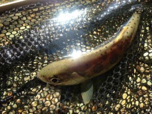 諸般の事情でブログをアップできない日々が続いています。見回り・水温測定・魚ウォッチングも一回り3時間かかるので,見回りだけ実行できています。PCのキーボードは一日数時間以上叩いてますが・・・。手薄になっている「調査」をチョッコシできた本日です,最下流で。読みは当たってました。毛鉤はアダムスパラ#16でティペットはキャッチする必要が無いので5X!!,魚が出てきて見えれば目的は達したようなもんですので。と,言いつつ,釣れてしまうんです。デカいのには岩に潜られてしまい「プツン」と・・5Xが。それだけ活性がアップしてるようです。本日の入渓者さんは上流部で推定32cmのアマゴをキャッチしてメジャーリング・写真撮影しようとしたら・・ネットから飛び出て,逃亡されちゃいました。ので,証拠写真無しで「12インチクラブ」認定は,残念ながら・残念ながら,できません。次回のチャンスを。10月以降も釣り可能エリアなので,期待が持てます。