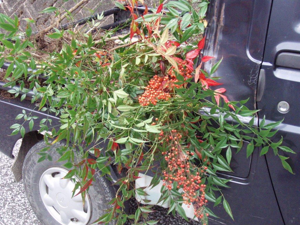南天の実も赤くなりましたね。
