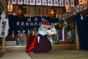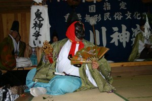 昨日1115’2012は雨模様で昼過ぎには「みぞれ」に。午後 入渓した方は厳しい気象条件の中,短時間で数尾キャッチし,今シーズンの中野川釣行はFin,お疲れ様でした。夜に長沢の白髪神社(シラガ ジンジャ) で行われた本川神楽の奉納を見にいってきました。白刃を使い,迫力ある伝統芸能です。今回はにごり酒の御神酒摂取は無しで帰宅。