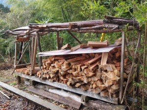仁淀川冬季アメゴ釣り場のスクールイベントが終わったので日常業務に戻りつつあります。朝方からは畑横・薪置き場の改造で,アレコレ試してみた結果,細木の幹や木の枝をロープで縛りつけた方式が最終的には・・以外に頑丈な「柔構造」で・・「これで良し」と。ただ,見た目がですね・・「ロビンソンクルーソーの掘っ立て小屋」風でして。アチコチに薪置き場がありますので,今回造った置き場は「ロビンソン」と命名しました。その後,久々の見回り・水温測定・魚ウォッチングへ ⇒ 気温が下がり傾向で「冷やい ヒヤイ」。いつものチェックポイント魚君達は殆んど姿を見せずで,双眼鏡でしぶとく探したら「沈んで」ました。各ポイントの気温も1℃台で,最上流部では昨夜の雪が溶け残ってました。なんか,いきなり「冬」って感じです。薪は昨年同期に比べて格段の在庫なので・ガンガン燃やしてます。ので,曇り空の日中でも室温は20℃を上回って「ホカホカ」です。「柚子ジャムレード」製造は本日で「一旦終了」。摘み取ってきた80kgをすべて処理しました。ジャムレード製造責任者さん,ほんとにご苦労さんでした。パちパチ。ラベルを貼って,配布・販売します。で,夕食は暖かい「牡蠣鍋」を日本酒で。