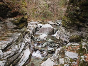 水温測定結果 (AM1200 Start曇り・青空・チラチラ雪) :出合橋 桑瀬川5.5℃(気温1.9℃) 中野川川5.3℃(気温3.5℃),1番・二ノ瀬5.1℃(気温1.3℃),14旧堰堤上 4.9℃(気温1.2℃),20番・西山広場:本流4.7℃(気温1.2℃) 支流6.0℃(気温1.3℃),26番 左の谷 (荒瀬 アラセ) 4.7℃ (気温1.7℃) ,27番 右の谷 (葛下げの谷 カズラサゲノタニ) 4.7℃(気温1.6℃)。