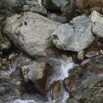 中野川気象情報:AM7 曇り,外気温18℃,外湿度80%,気圧947hpa。PM8 雨,外気温21℃,外湿度76%,気圧944hpa。水位はラッコの足の先(いまだ低め)です。にごりはまだ。 明日は雨の予報です。「ラッコ岩ってどれ」質問がありますので画像をアップします。ラッコの足とかアザラシ母さんとか子供アザラシとか,解りますよね? 倶楽部ハウスの真下です。今日の午前中までは画像の水位(低め)でした。