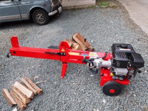 本日の行動:午前・エンジン薪割り機の搬入⇒威力抜群!!,その後立木伐採の情報で借り物の軽トラで出撃⇒樫の木Get(すごく重い。40kg/1本・2mを10本),チェーンソーで樫の木を玉切り(重い・堅いで半分消化がやっと)。魚とライズを目視しながら釣りできず。
