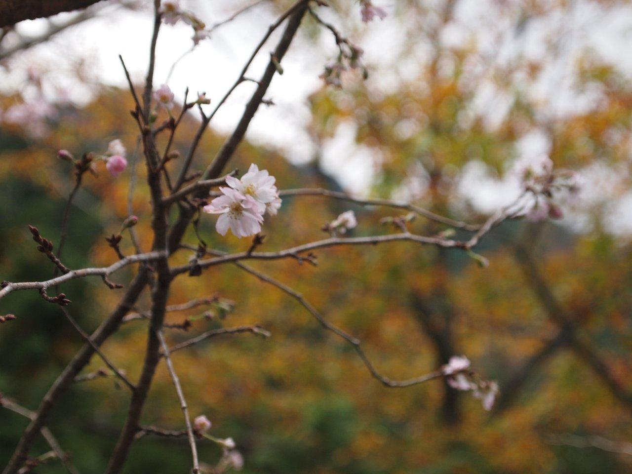 今週末は忙しいので8日ぶりに買い出しへ。寒風山トンネルのこっち側(高知側)は肌寒いのにトンネルを抜けるとグングン気温が上昇しました。おそらく高知側に下りて行っても上がるのでしょう。やはり山の天気です。途中,寒桜が街道沿いに咲いていました。そこで一首:山の秋紅葉の残りと寒桜。